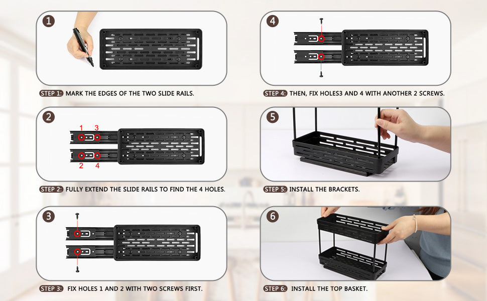 Simply place the organizer inside your cabinet or on the countertop, secure the base with the included adhesive pads (optional for extra stability), and slide the baskets into place. No tools or drilling needed! See how effortless it is in our quick demo video below ⬇️