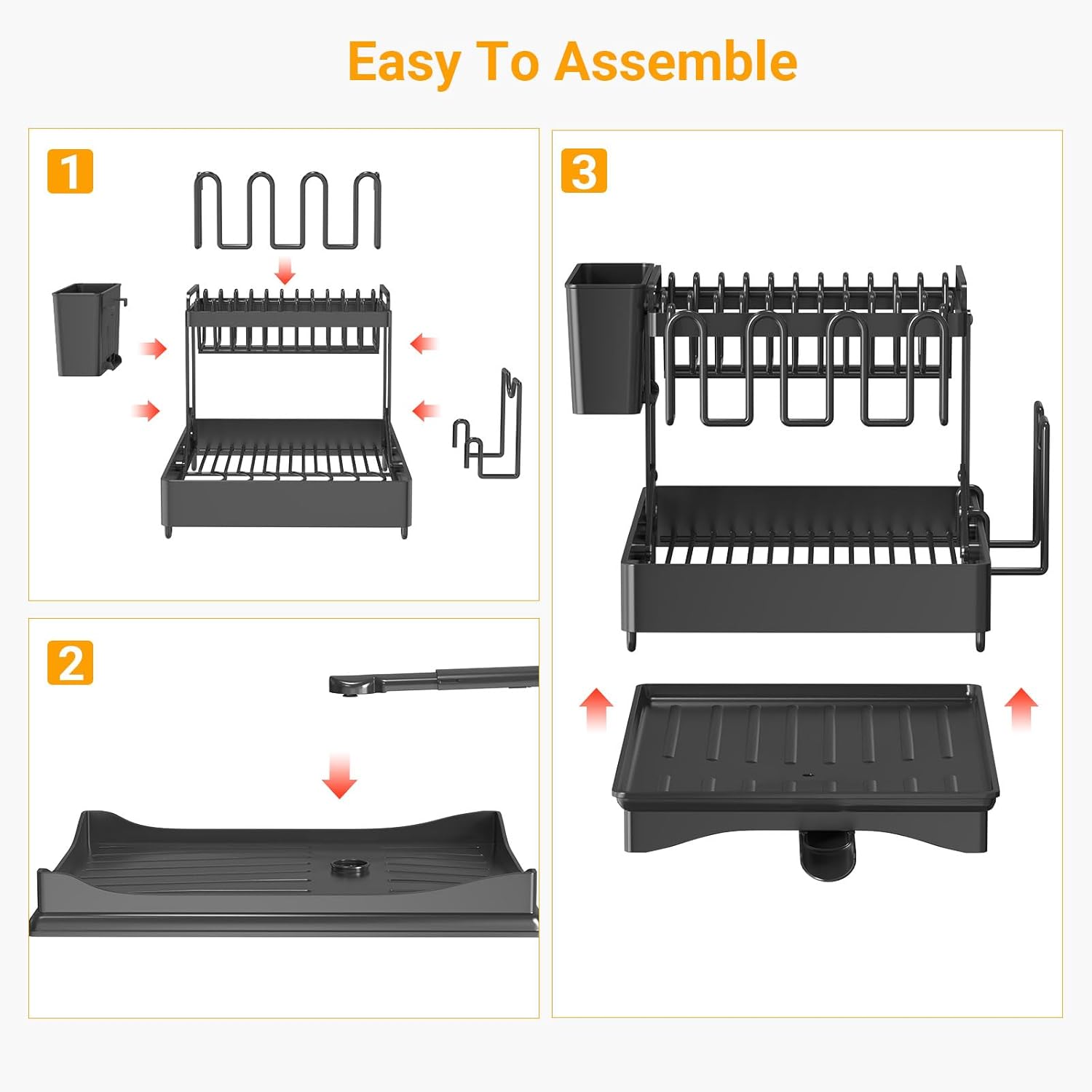Removable, Heavy-Duty Countertop Dish Drainer with Utensil & Cup Holders - Newest
